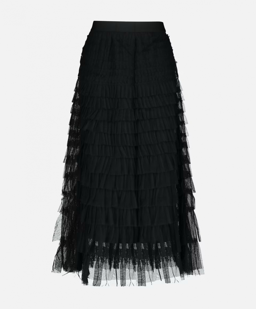 Festlig og feminint tyllskjørt fra Floyd med flere lag av myke volanger. Skjørtet har strikk i midjen og et mykt underskjørt som føles behagelig. Normal i størrelsen.