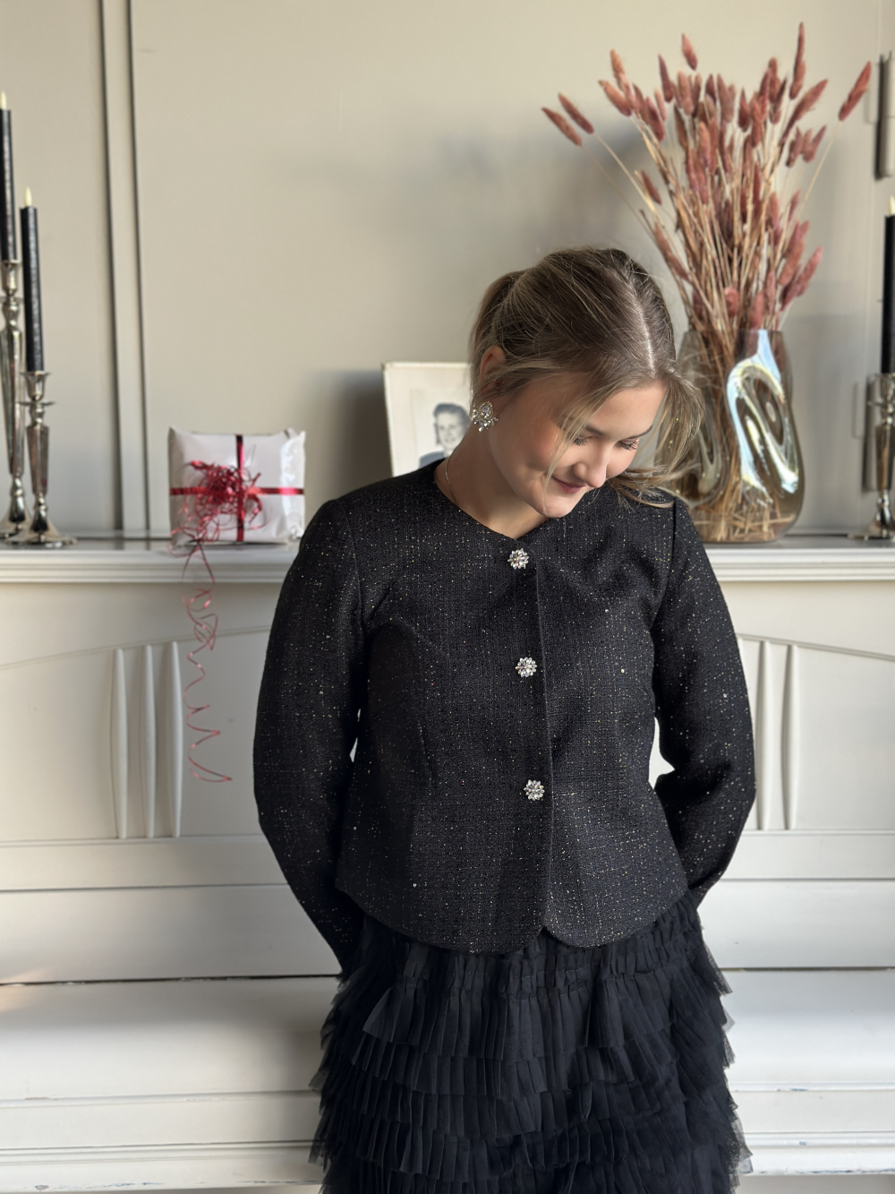 Festlig og feminint tyllskjørt fra Floyd med flere lag av myke volanger. Skjørtet har strikk i midjen og et mykt underskjørt som føles behagelig. Normal i størrelsen. Signe er 167 cm og har str. XS.