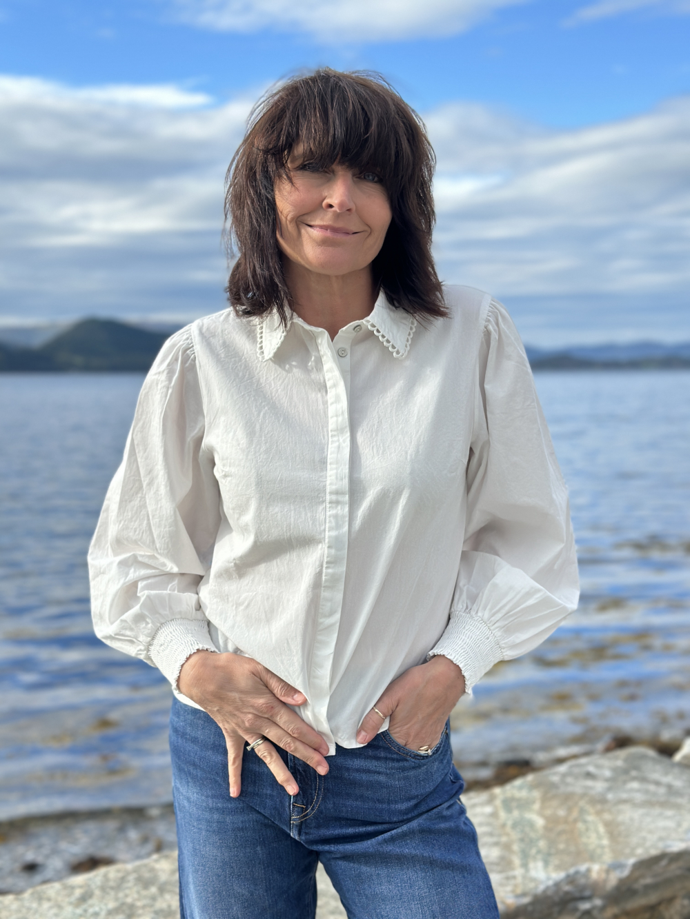 Elegant skjorte fra Y.A.S med fine detaljer på kragen. Skjorten har en rett passform, ballongermer med smock-mansjetter og skjult knappelukking i front. Normal i størrelsen. Bente er 174 cm og har str. 38