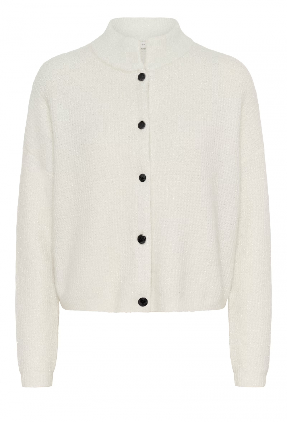 Den populære strikken fra Gestuz er tilbake i nye farger! Dette er en kort cardigan med løs passform. Den lukkes med nydelige knapper i svart med gull kant. En super kvalitet i ullblanding, som holder seg sesong etter sesong.