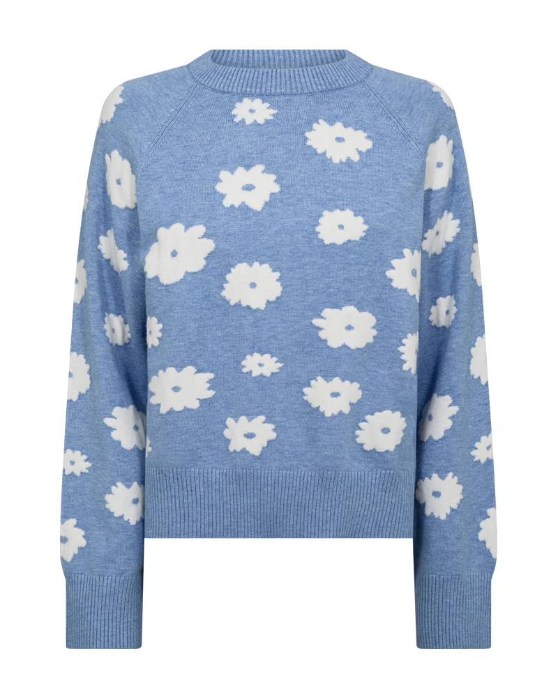 Myk genser fra Freequent i viskosekvalitet. Genseren har rund hals med ribbekant. Bred ribbekant nede på ermene sog ermene har god vidde. Blomstemønstret gjør genseren ekstra fin. Normal i størrelsen.