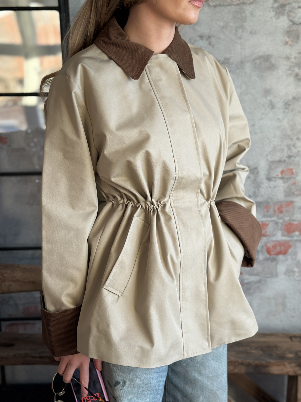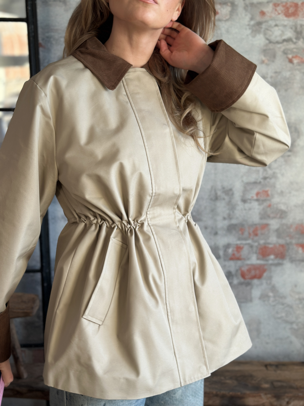 Parkas fra YAS i lett bomullskvalitet. Jakken har rett passform og rekker litt nedenfor hoftene. Rette, vide raglan ermer med cordfløyelkant nederst. Kragen er også cordfløyel. Lukkes med glidelås og skjulte knapper foran. Stikklommer i siden. Innvending snøring i midjen. Normal i størrelsen. Hedda er 165 cm og har str 36