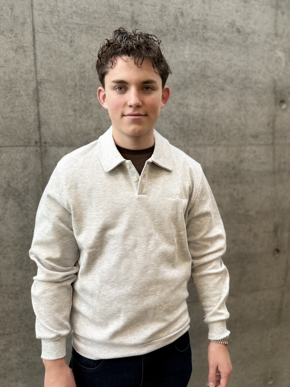 Et avslappet lag-på-lag-plagg som kombinerer sweatshirtkomfort med polo-stil. Laget av piqué-strukturert French Terry, lett børstet på innsiden og avsluttet med knappet krage og broderi på brystet.