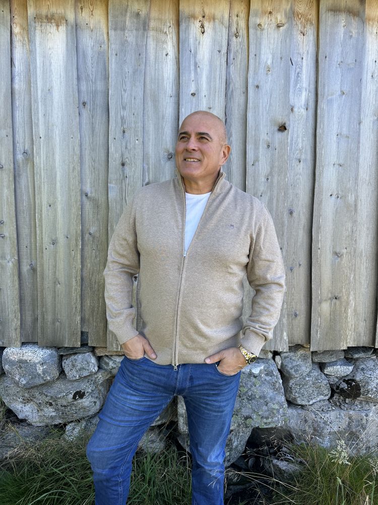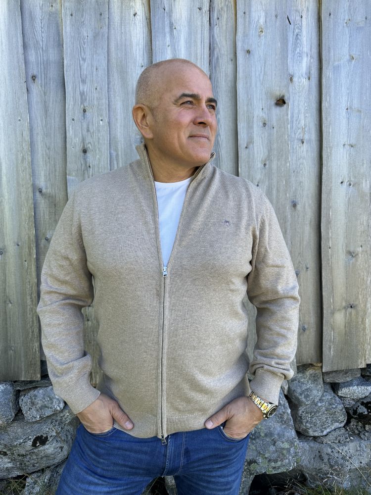 Casual Cotton Zip Cardigan Dk. Sand Melange