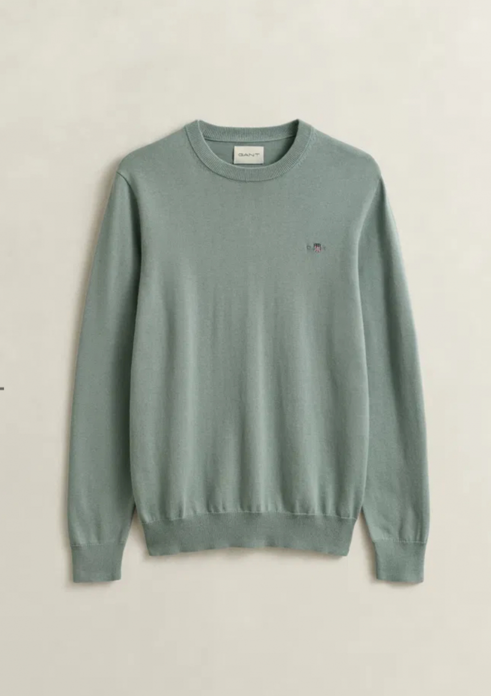 Klassisk bomullsgenser fra GANT med liten brodert GANT-logo på brystet.. Genseren har rund hals med ribbekant i halsen, på ermene og nede langs kanten. Normal i størrelsen.