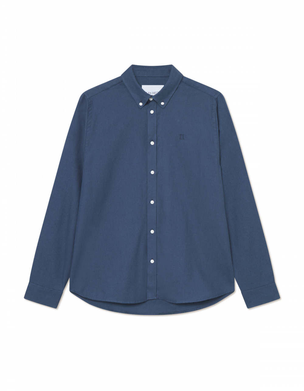 Skjorte i myk bomull fra Les Deux. Rett passform. Ton-i-ton brodert logo på brystet. Lett melert mørk blå farge.