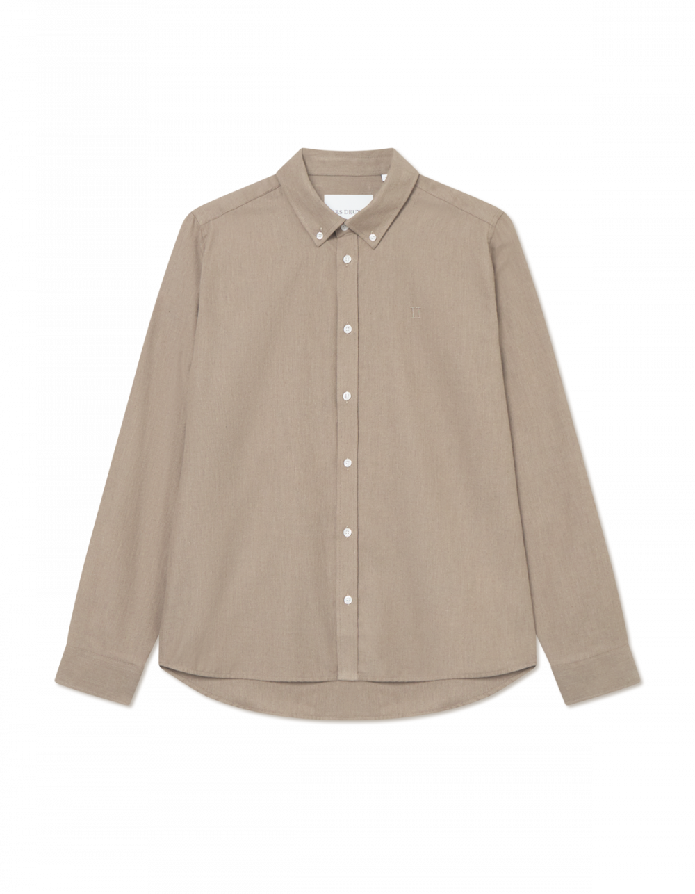 Skjorte i myk bomull fra Les Deux. Rett passform. Ton-i-ton brodert logo på brystet. Lett melert mørk beige farge.