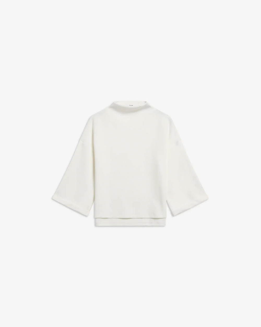 En topp som passer til alt, ELLE fra Iben. Den er laget av myk og fast premium viskose som gir et luksuriøst preg. Toppen er designet med en løs stående hals og 3/4 lange ermer med en liten oppbrett. Den har splitt i sidesømmen og draperingen i siden gjør toppen ekstra fin i fasongen. Normal i størrelsen.