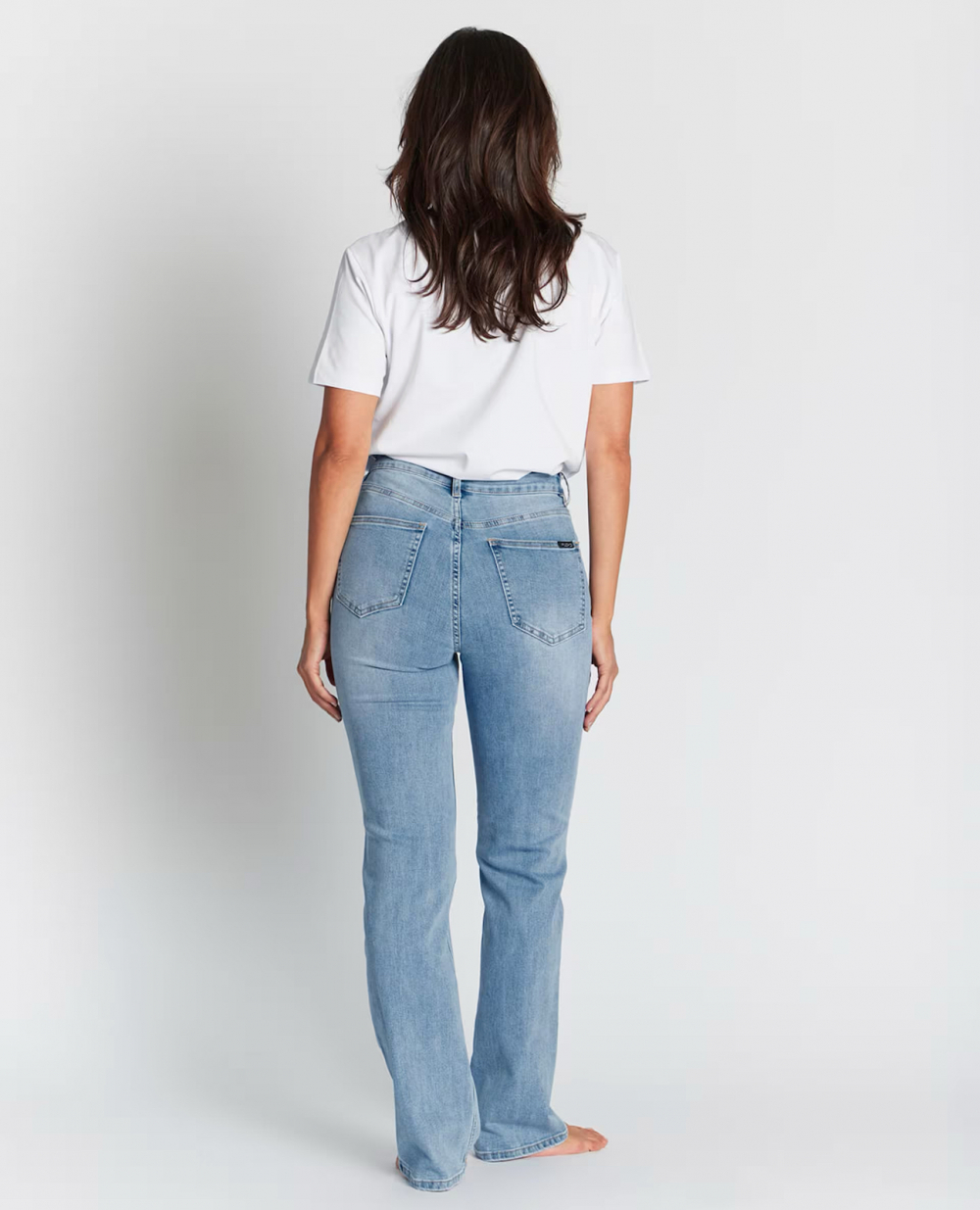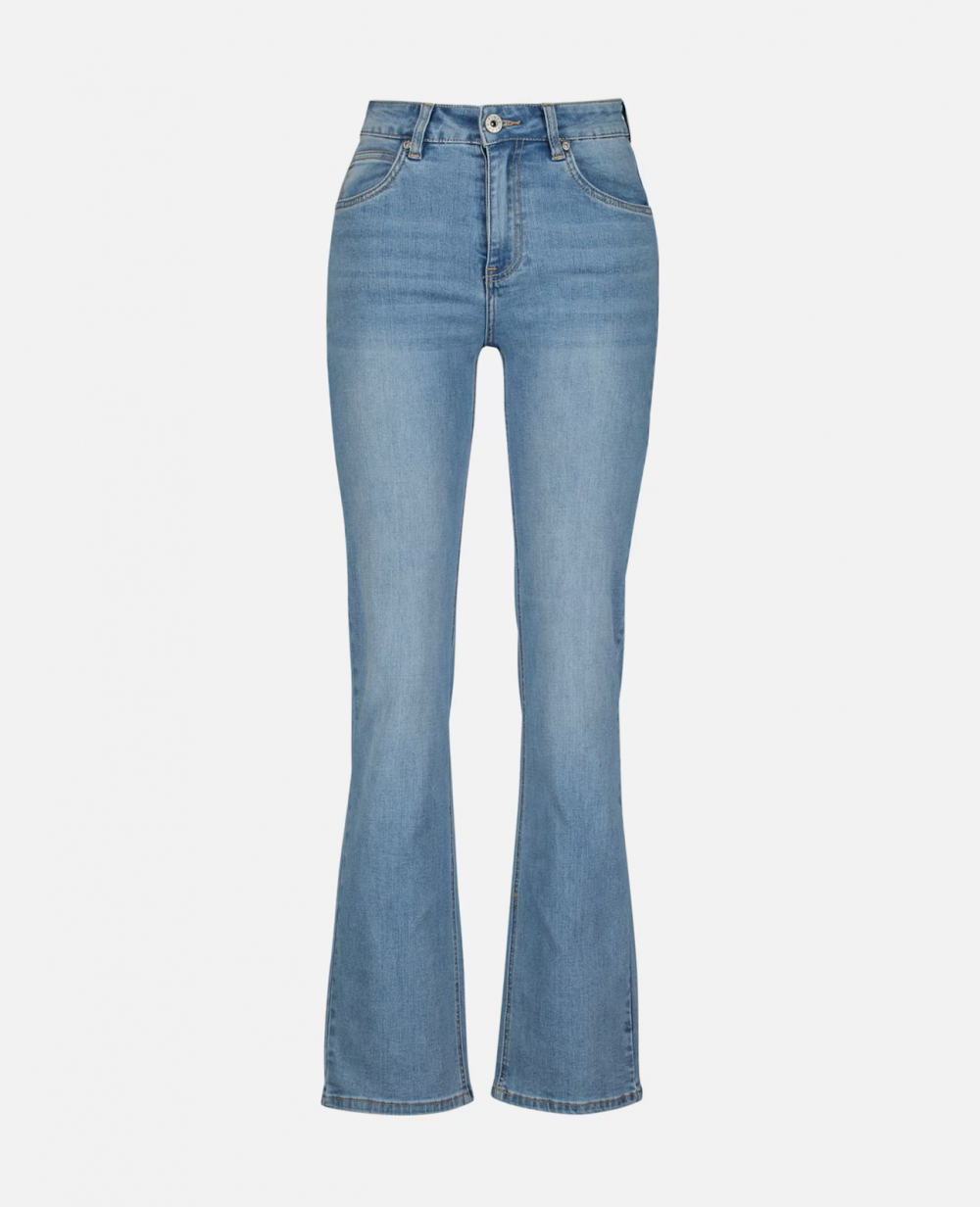 Rette jeans med god stretch fra Floyd. Jeansen er høy i livet og lukkes med knapp og glidelås.