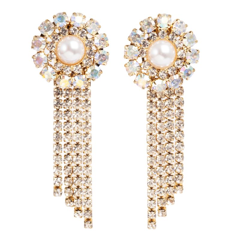 Et par glamorøse statement-øredobber som oser av eleganse. Imagine-øredobbene kombinerer en vakker perle i midten med skinnende krystaller og lange, glitrende lenker som beveger seg elegant når du gjør det.
