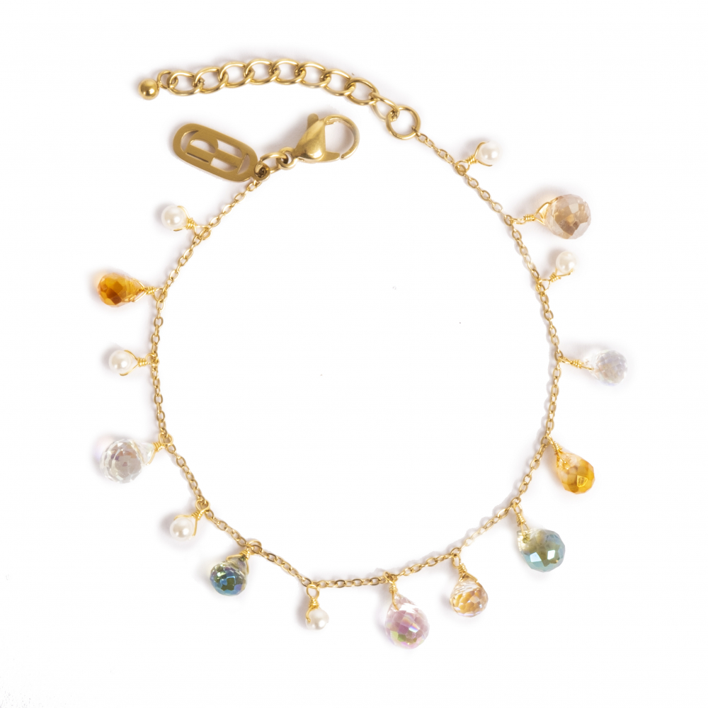 Et lekent og delikat armbånd med dråpeformede anheng i vakre pastellfarger. Last Song-armbåndet kombinerer små perler og glitrende krystaller i en varm gulltone som gir et feminint og friskt uttrykk. Det justerbare leddet gjør at du enkelt finner den perfekte passformen.