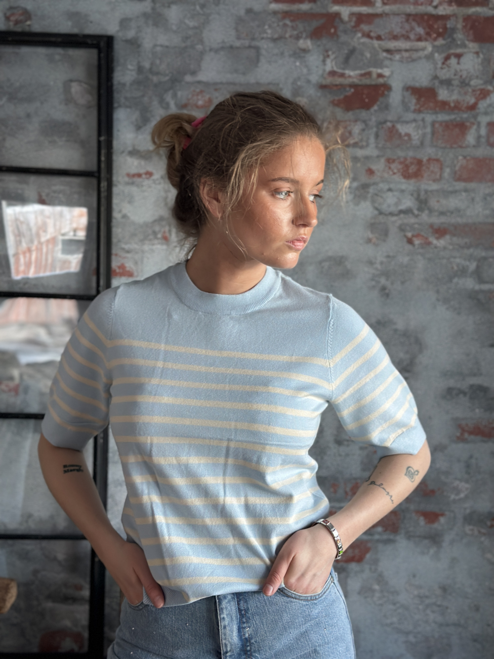 Lena ss Knit Pullover Skyway/Birch