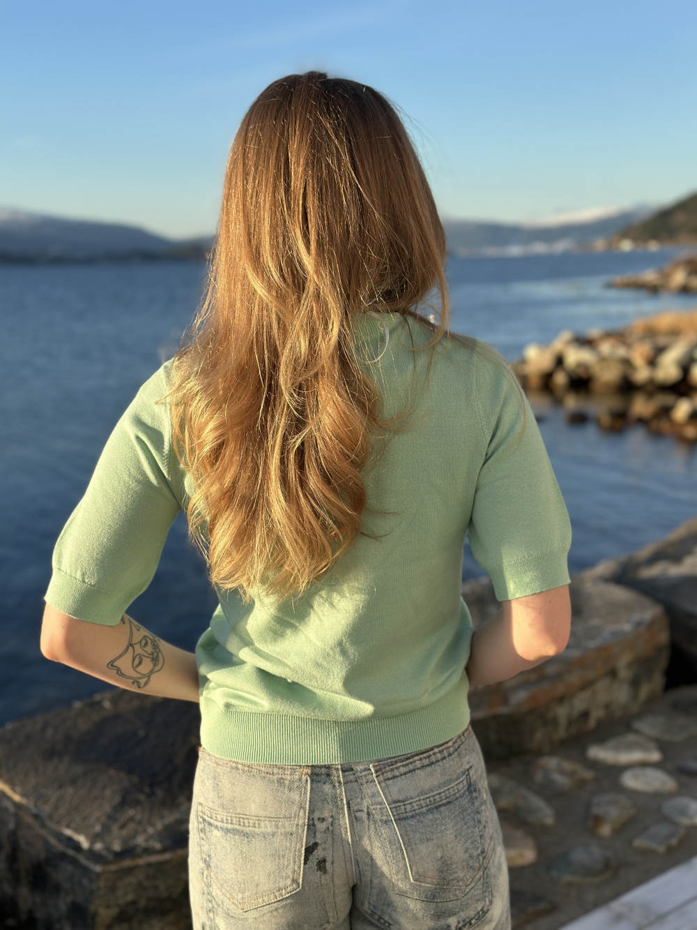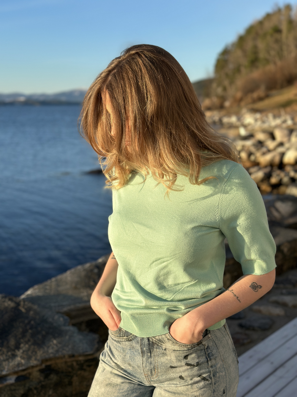 Kortermet strikket topp fra YAS i myk viskose - kvalitet. Toppen har rund hals og er rett i fasongen. Ermene rekker til albuene.