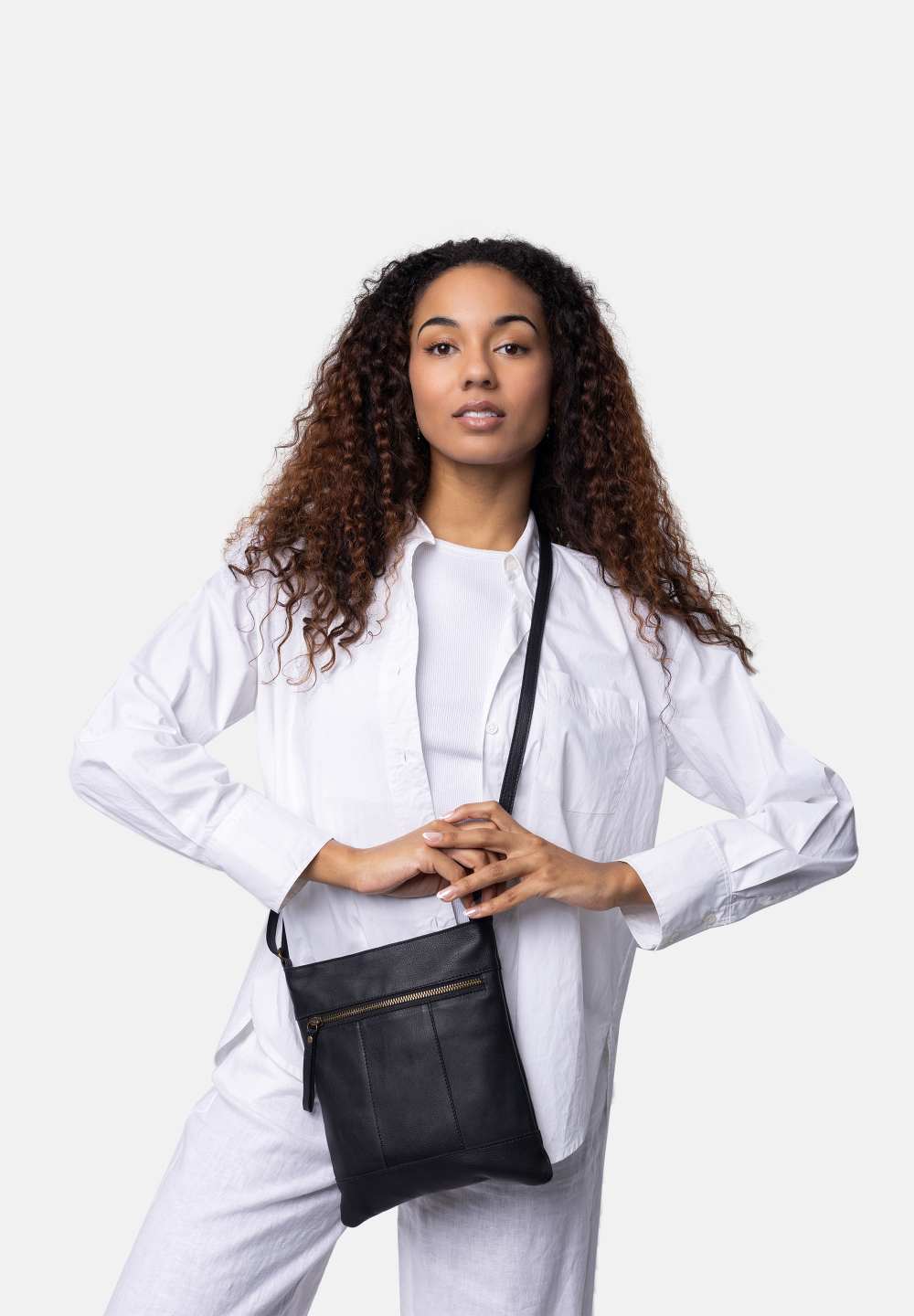 Perfekt hverdagsveske fra Redesign. Vesken har fem rom og lukkes med glidelås. den har ett mindre rom med glidelås og to små inni. Ett større rom med glidelåslukking utenpå. Juster bar skulderrem.