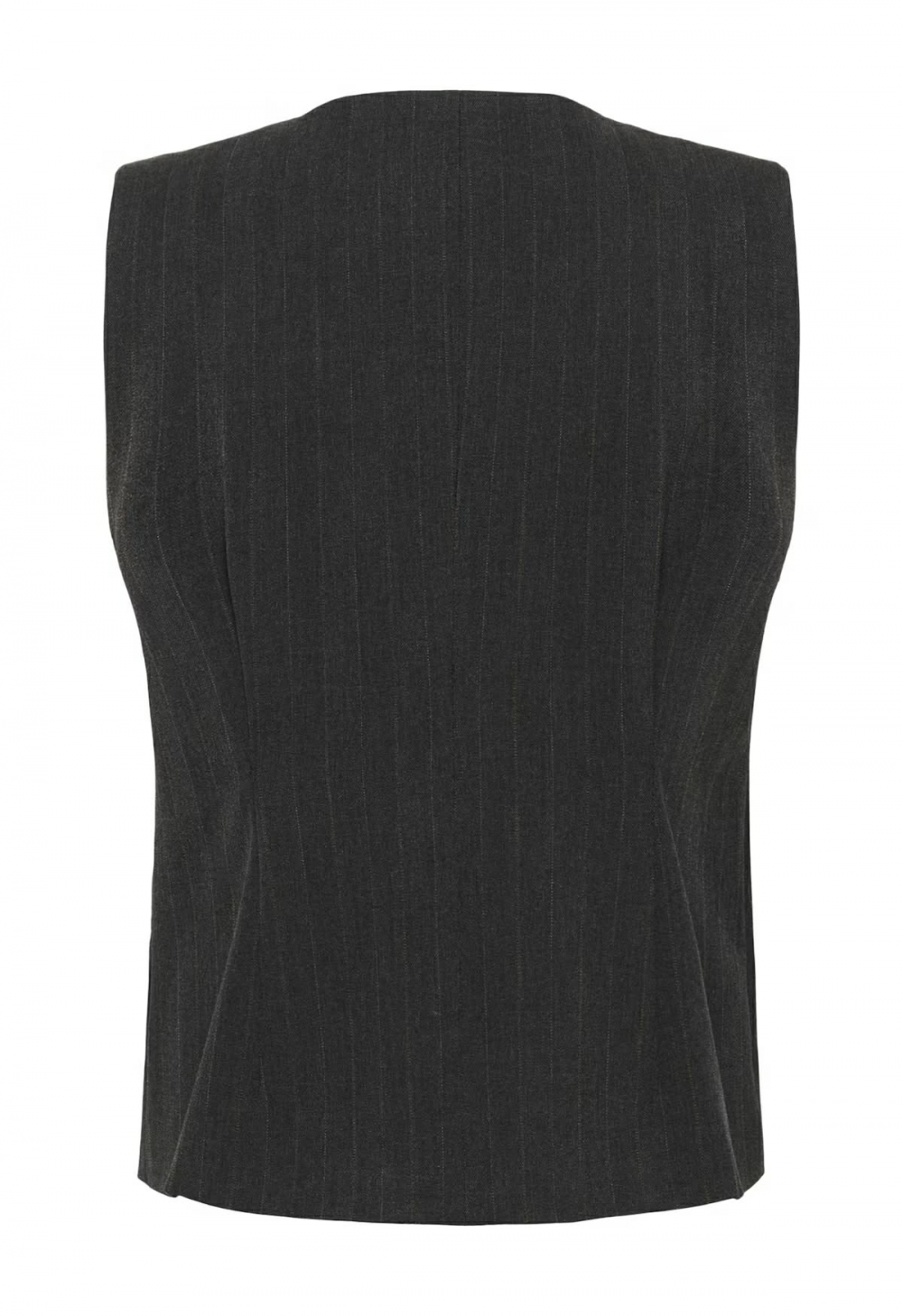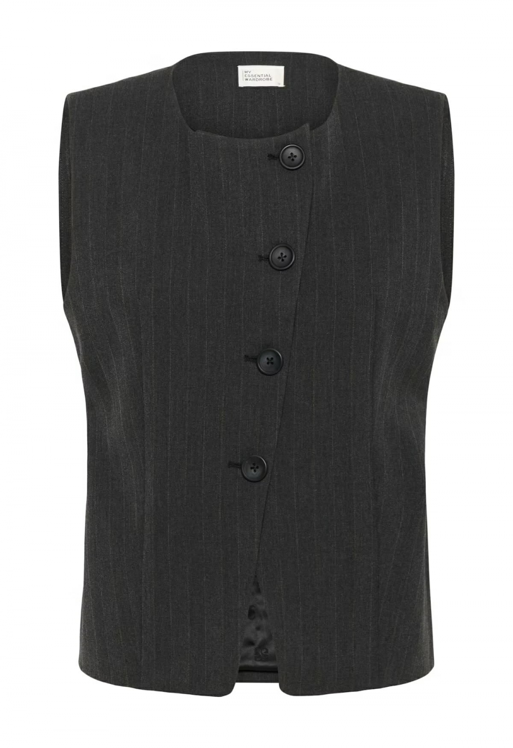 Nålestripet vest med rett passform, ermeløs silhuett og asymmetrisk fireknapps-lukking. Rund hals og glatt finish gir et moderne preg.