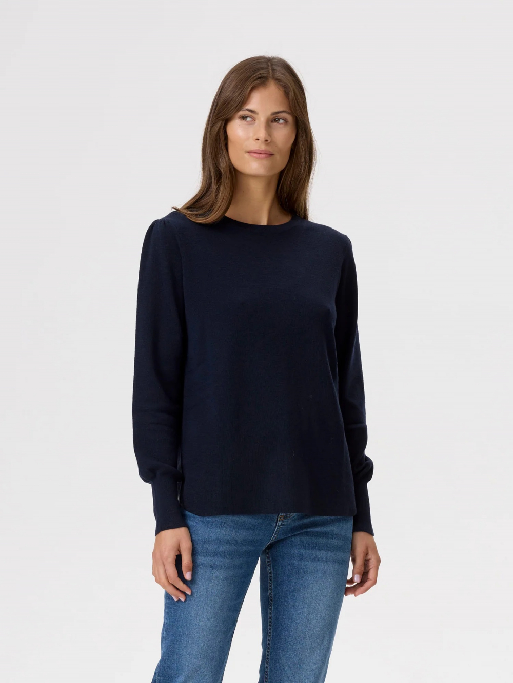 Mela Sweater er en tidløs favoritt som passer år etter år. Genseren er strikket i myk og behagelig merinoull som føles god mot huden. Den har rund hals, vrangbord på ermene og en lett avrundet kant nederst som gir en fin passform. Like fin til jeans som til sesongens bukser, og et sikkert valg i basegarderoben.