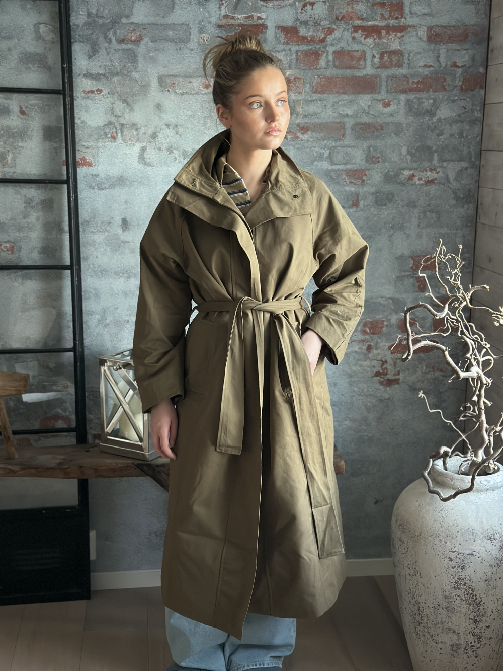 En utrolig stilig overgangsjakke som kombinerer funksjon og eleganse. Den er både anvendelig og pen, kan kneppes helt opp og har justerbar knyting i livet som gir en flatterende passform og et gjennomført uttrykk.