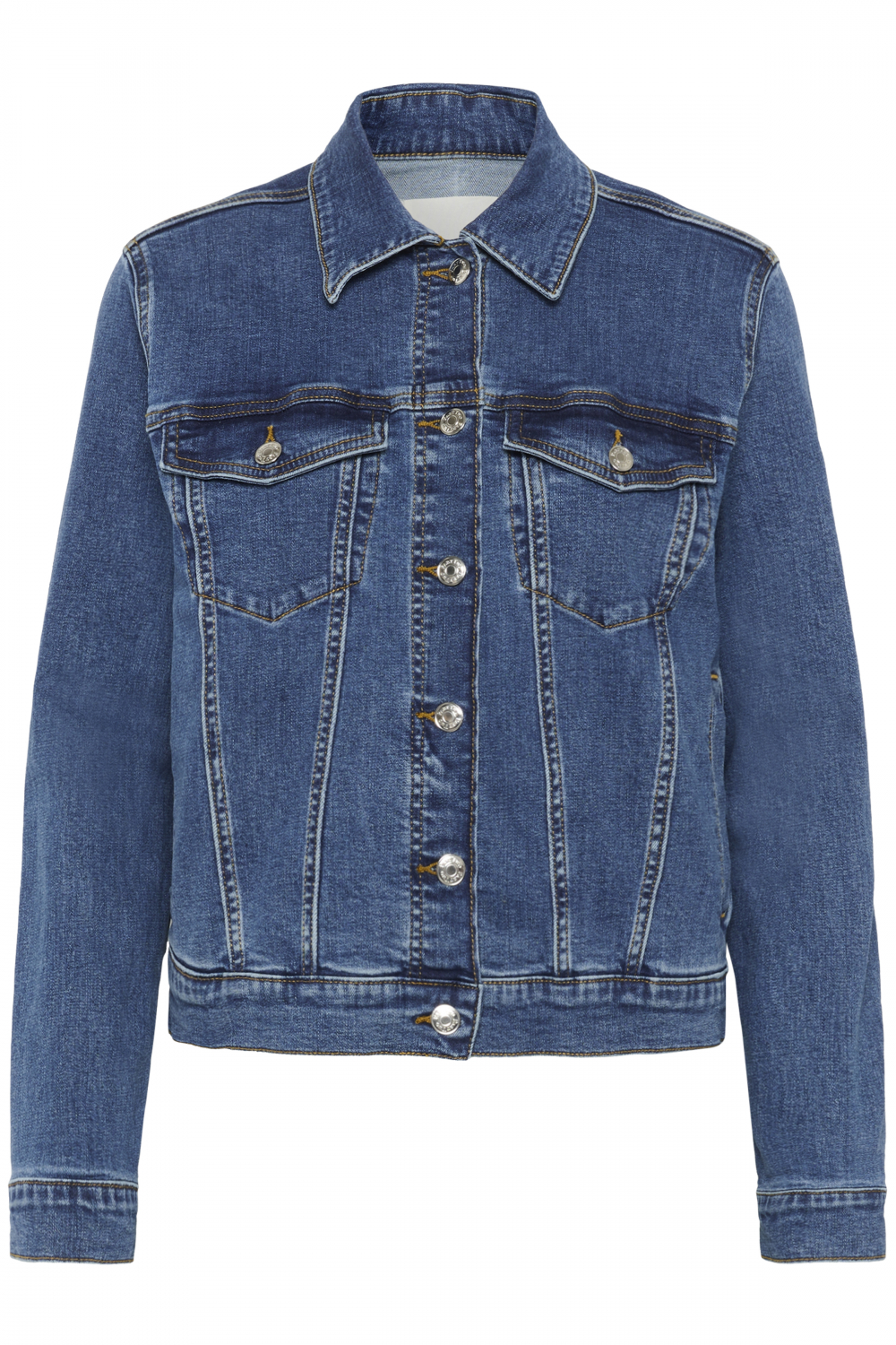 Klassisk dongerijakke fra Part Two i myk dongeri med stretch. Jakken har klassisk krage og lukkes med knapper foran. Brystlommer og stikklommer i siden gjør jakken ekstra praktisk. Litt innsvingen, men med god og komfortabel passform. Jakken har lange ermer med mansjetter som lukkes med knapp. Linningen kan reguleres med hemper. Normal i størrelsen.
