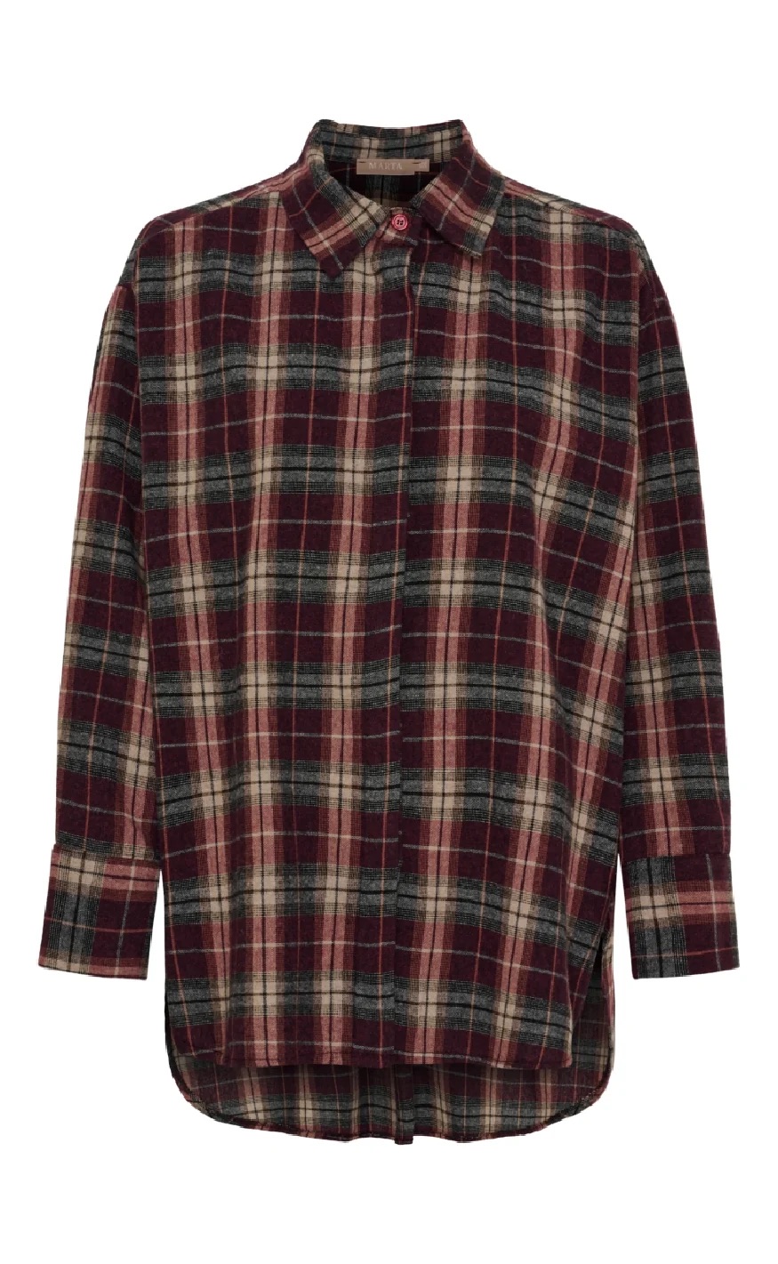 Klassisk og myk flanellbluse fra Marta Du Chateau i sesongens fineste rutemønster. Orlanda-blusen kombinerer komfort og stil med sitt tidløse design og lune materiale. Den har klassisk krage, knappelukking foran og en litt avrundet kant nederst som gir en flatterende passform.