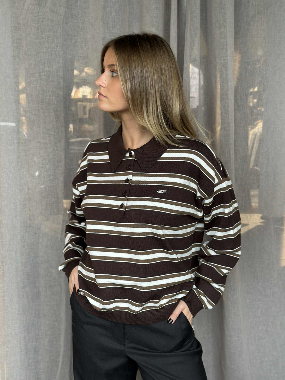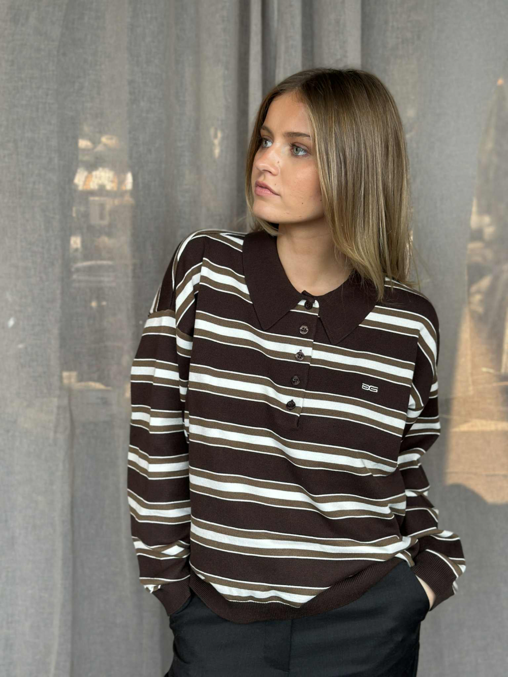 Denne genseren med polokrage og striper er ett av sesongens hotteste trender! Den har en løs og kort passform, med lange ermer. Et sportslig og vintage-inspirert plagg som styles både til hverdag og fest!