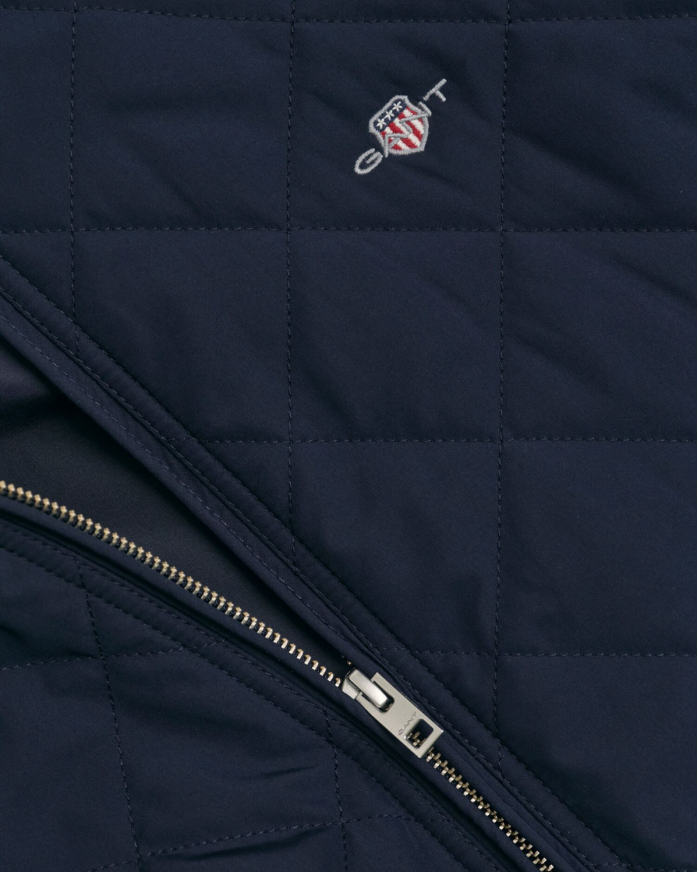 Vaffelmønstret ytterjakke fra GANT i klassisk marineblå farge. Lukkes med glidelås og har en liten hals med dekorative knapper.