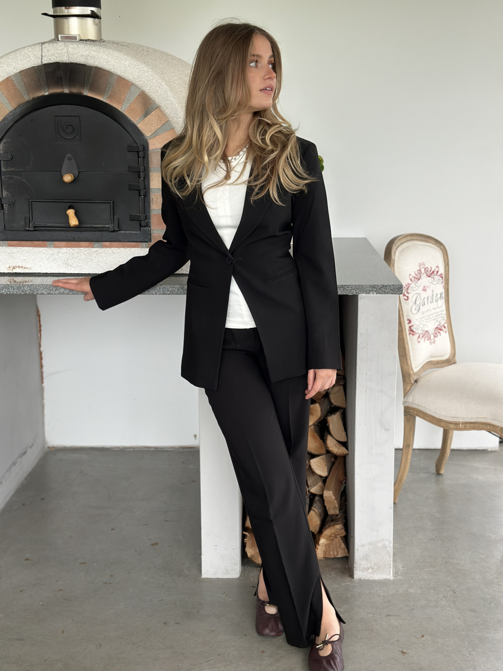 Stilig dressbukse fra ONLY med rette ben og splitt nede. Buksen har høyt liv med god passform. Stikklommer i siden. Match den til Raven blazer for komplett drakt. Normal til stor i størrelsen. Hedda er 165 cm og str 34 i bukse og 36 i blazer.