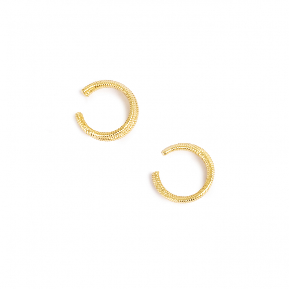 Trendy og minimalistiske earcuffs i en elegant gulltone. Save Me-earcuffene har en strukturert overflate som gir en moderne og luksuriøs følelse. De bæres enkelt uten hull i øret og kan kombineres med andre øredobber for en personlig og edgy look.