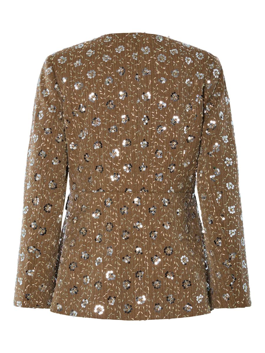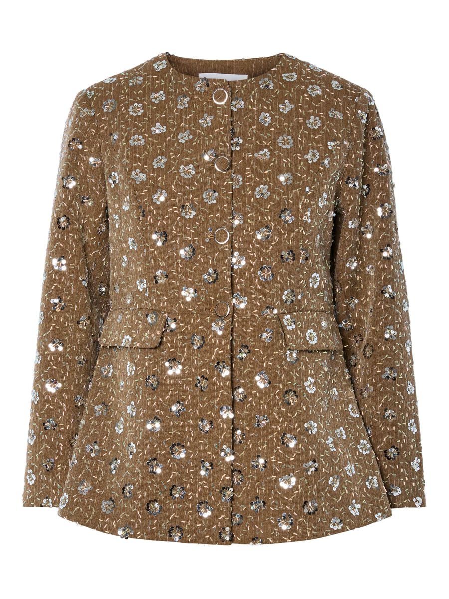 Pynt deg og feir alle de spesielle øyeblikkene med denne elegante og jakken fra YAS! Designet for å gi deg selvtilliten til å skille deg ut. Superstilig blazer med paljetter, frontlommer og knappelukking. Jakken har normal passform, med lett innsving.