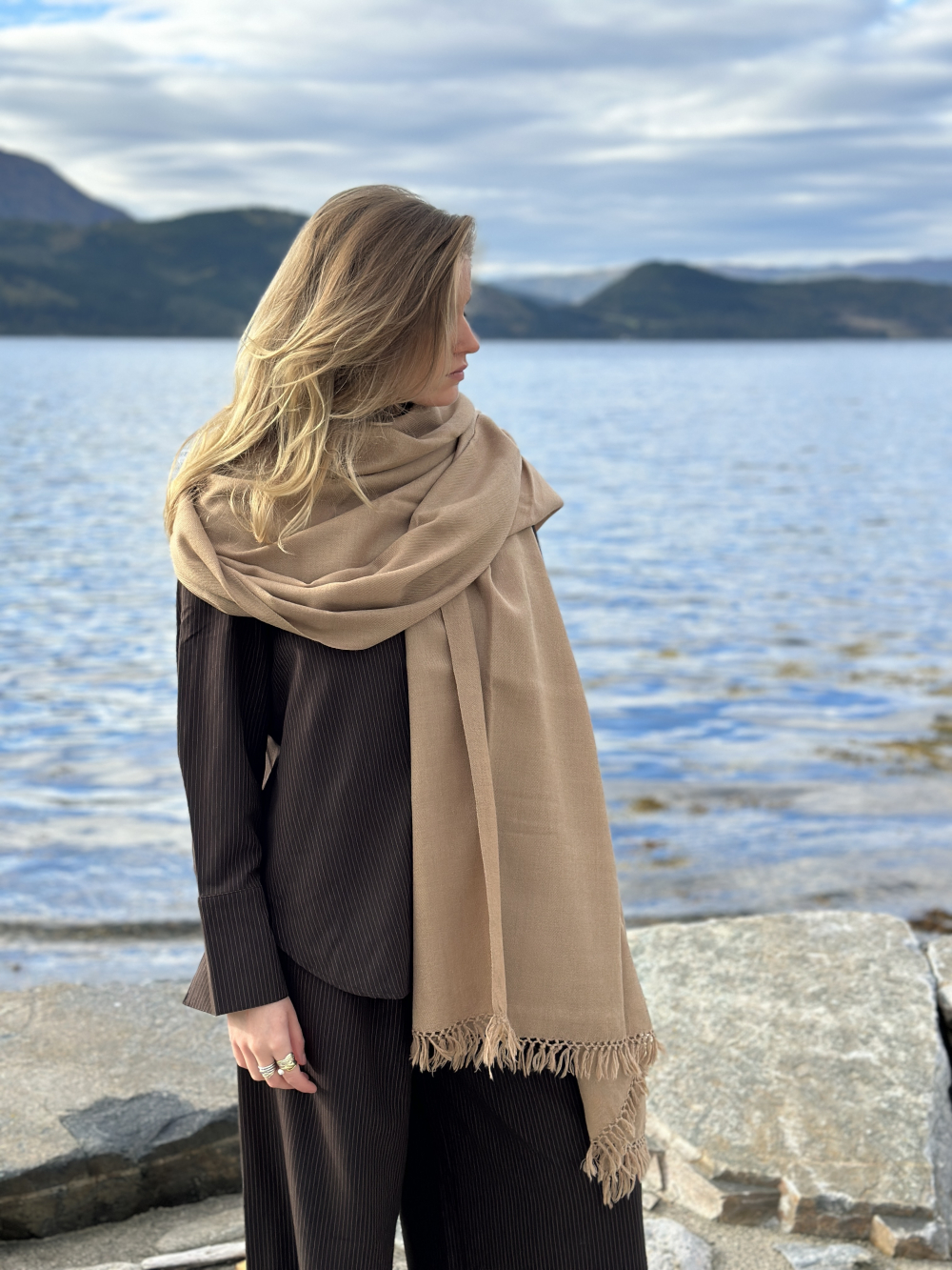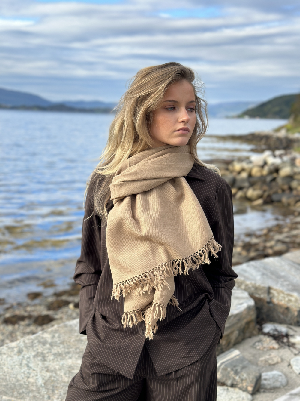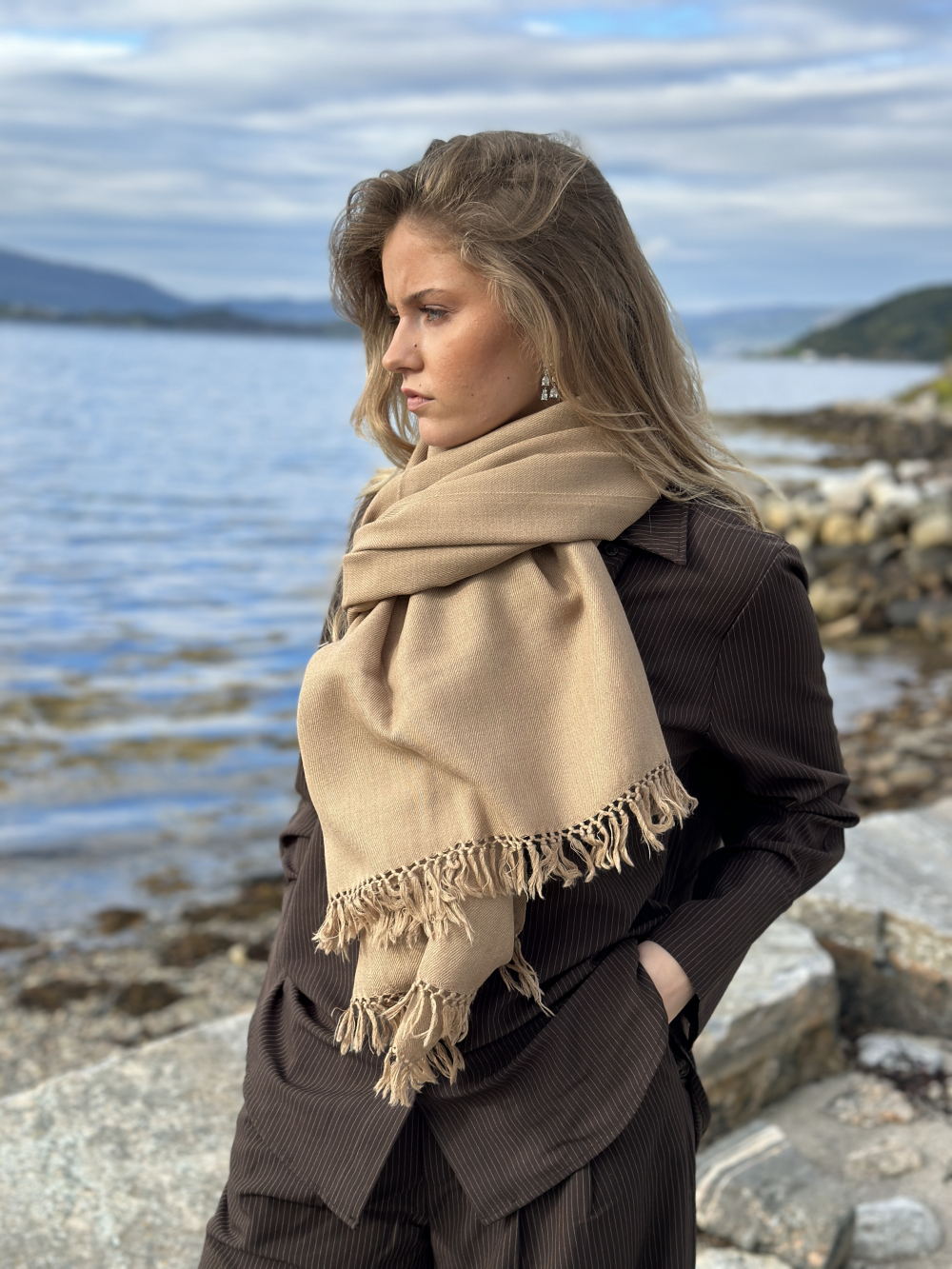 Deilig skjerf i ull fra vårt eget merke Passelé. Skjerfene er håndvevd av noen fabelaktige damer i India.